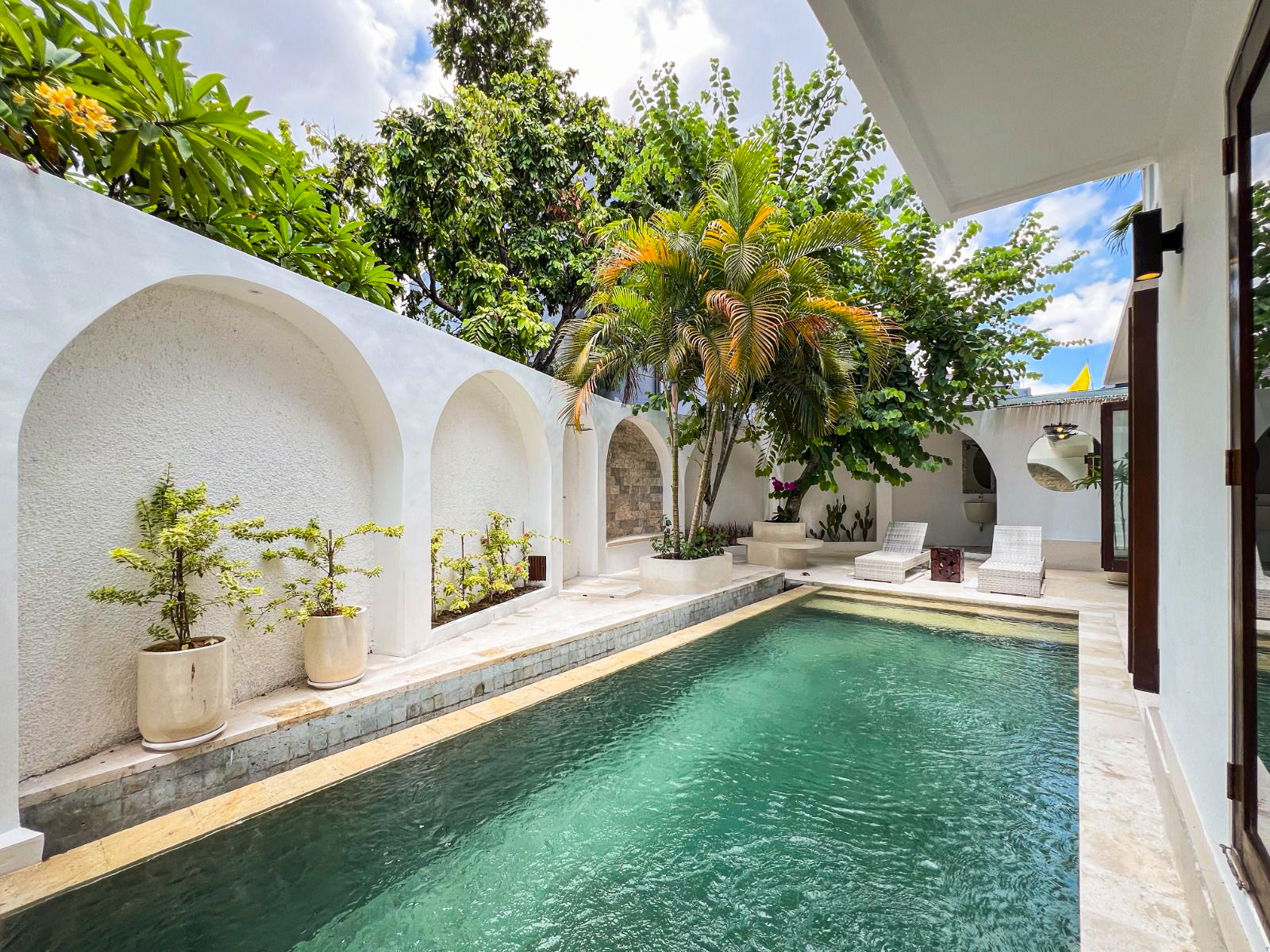 Featuring textured white plaster walls, iconic arched openings, and natural materials, Nata-T House offers a timeless architectural identity with strong visual appeal. The layout is optimized for natural daylight and cross-ventilation, creating bright, airy spaces well-suited to Bali’s tropical climate.